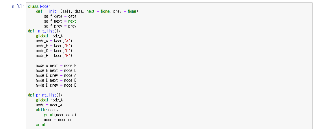 이로서 파이썬으로 이중 연결 리스트를 구성해봤습니다.