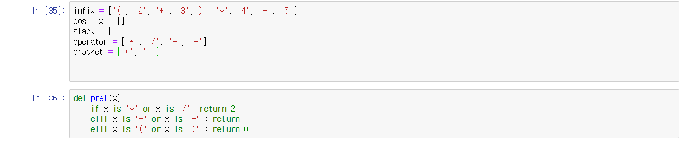 그 다음 표현법 순서를 담을 postfix와 연산자를 담을 stack을 둔다.
