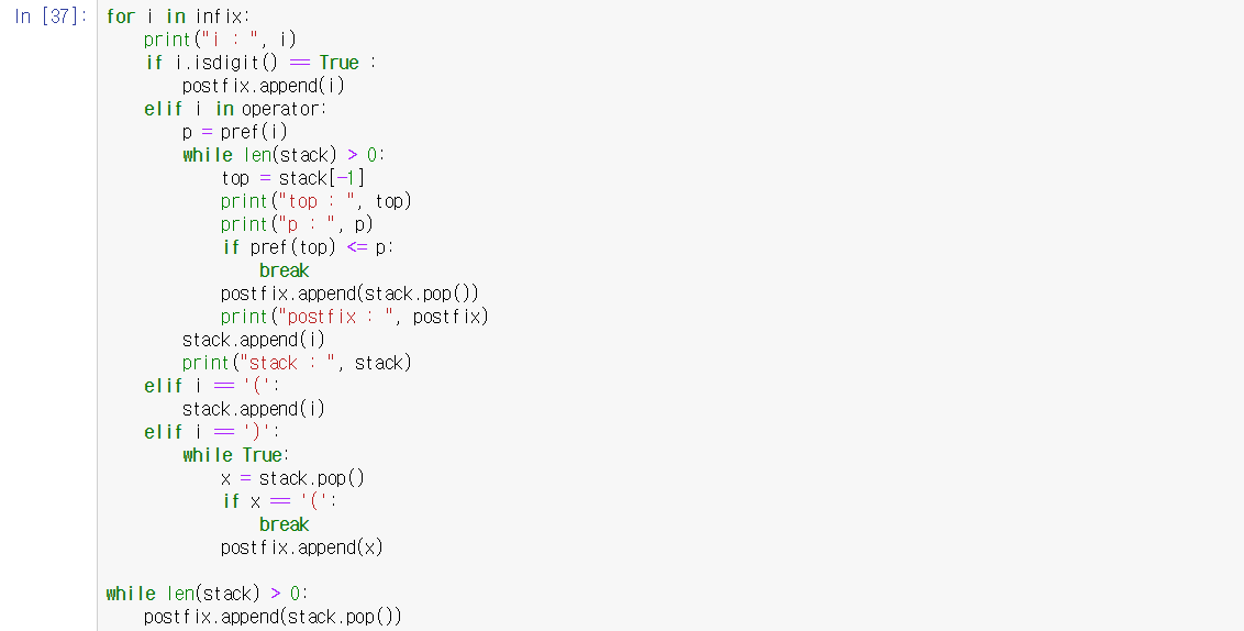 그리고 마지막으로 stack에 남아있는 애들을 postfix에 넣어주면 끝!