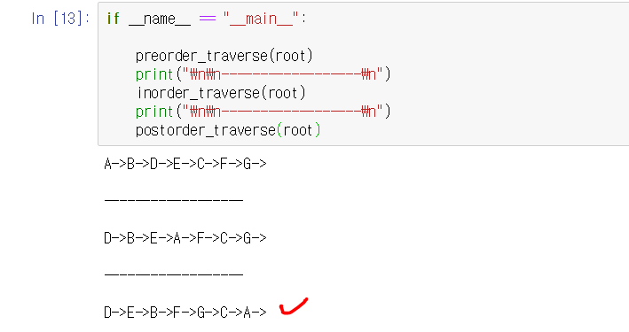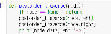 후위 순회도 아까 함수랑 완전히 똑같다. 대신 print만 어디로 해줄지가 달라진다.