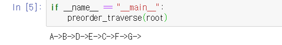 이게 전위 순회이다. Root부터 보고 그 다음 왼쪽 노드로 가서 그 부분에서 root를 보고 그 다음에 또 왼쪽이 있으면 그 부분에서 root를 보고 없으면 오른쪽 보고.. 이런 방법으로 진행된다. 그래서 위 구조에서 전위 순회를 하게 되면 위 처럼 A->B->D..가 나오게 된다