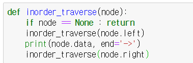 아까 함수랑 완전히 똑같다. inorder_traverse를 만들어서 해준다.