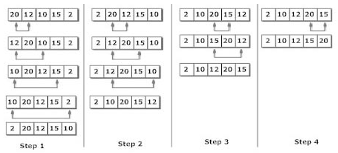 매 step으로 나뉘어 진행하는데 첫 번째에 스탭을 돌면 가장 작은 값이 맨 처음으로 온다.