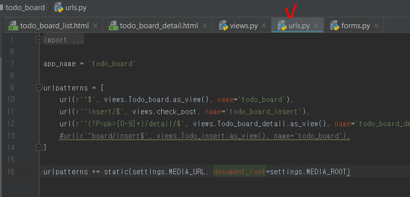 상세보기를 하려면 먼저 urls.py를 수정해야합니다