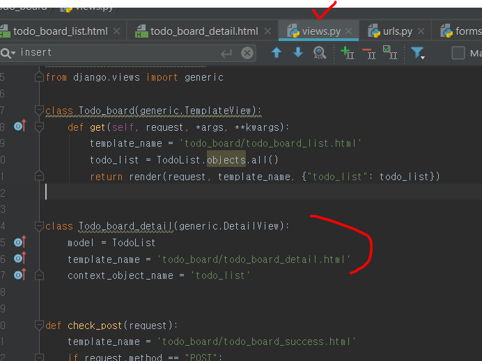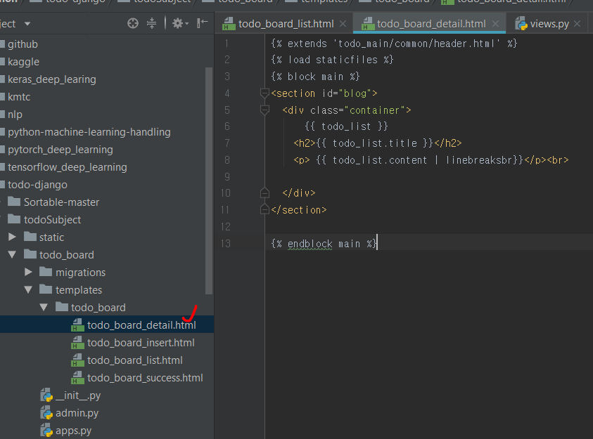 그리고 todo_detail html 파일을 하나 만듭니다. 여기서 todo_list를 기준으로 접근을 하죠?