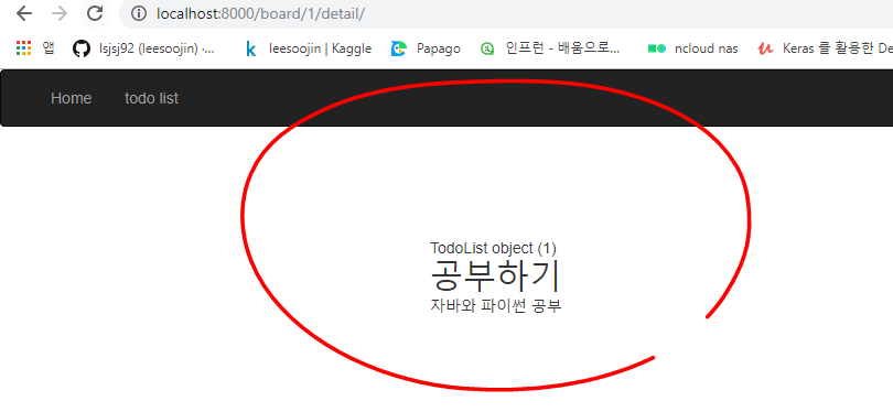 여기까지가 파이썬 장고를 활용한 todo 게시판 만들기 상세보기 편이었습니다