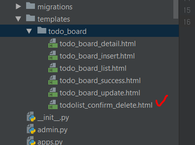templates에 위와 같이 todolist_confirm_delete.html 파일을 만들어줍니다