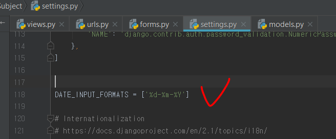 setting.py에다가 DATE_INPUT_FORMATS를 해줍니다
