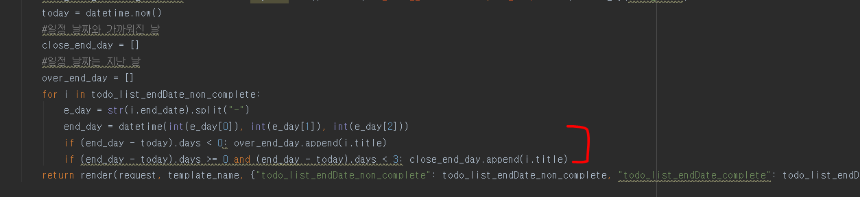 그리고 현재 날짜와 비교를 해서 기한을 체크해줍니다