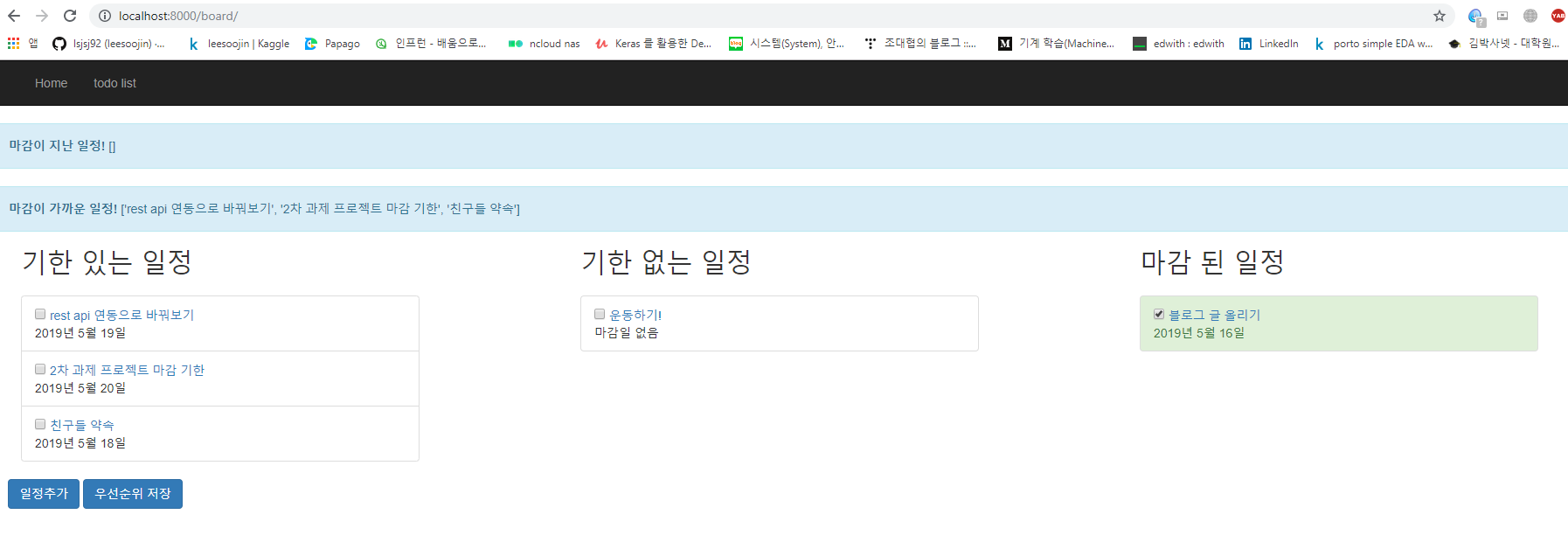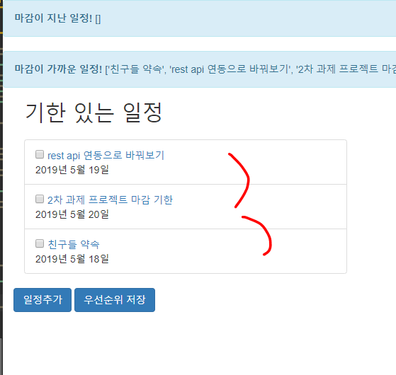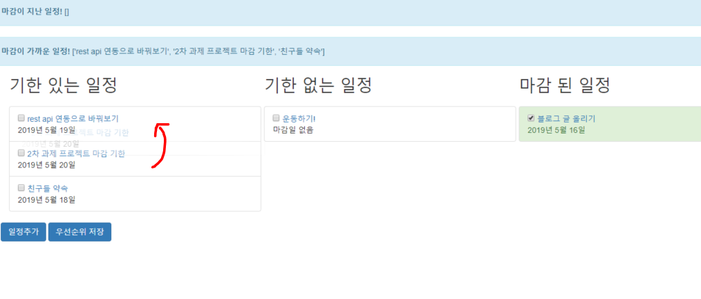 그래서 일정의 우선순위를 만들어서 우선순위 별로 정렬되어 웹 화면에 출력이 되도록 할 것입니다!