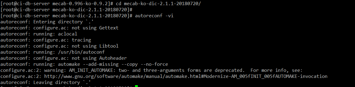 압축을 푼 디렉토리에 들어가서 autoreconf -vi를 입력해줍니다