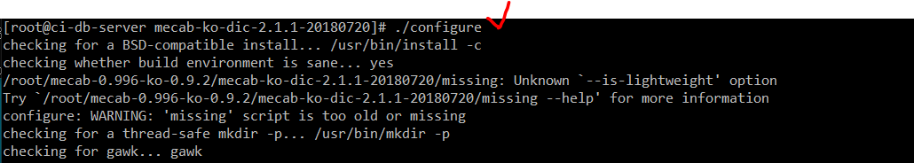 거기서 ./configure를 통해 configure를 실행시켜 줍니다.