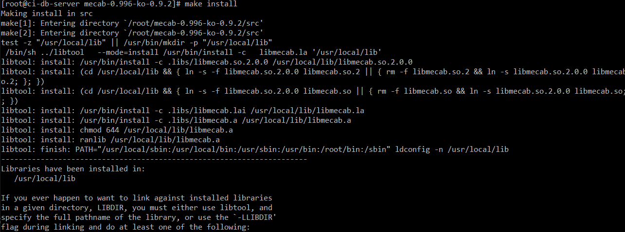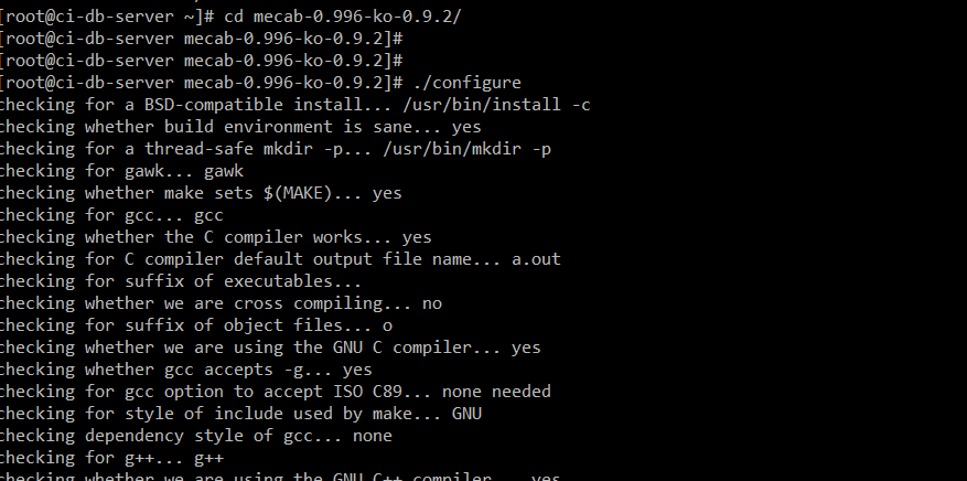 압축이 다 풀리면 mecab-ko 디렉토리 안에 들어갑니다.