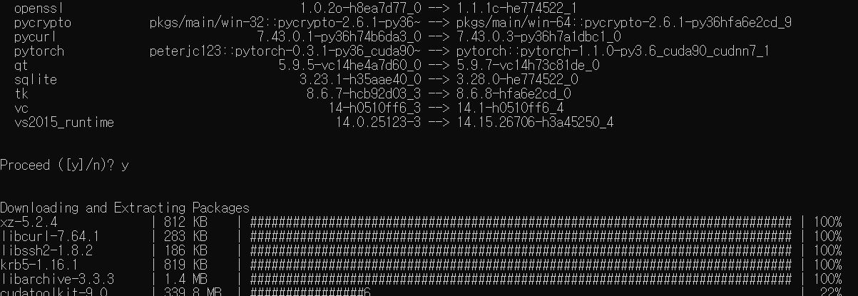 여기서 conda install pytorch torchvision cudatoolkit=9.0 -c pytorch