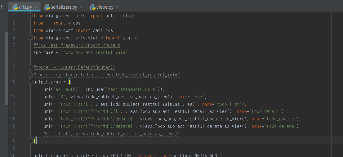 그리고 delete와 update에 해당되는 url도 추가해주셔야합니다.