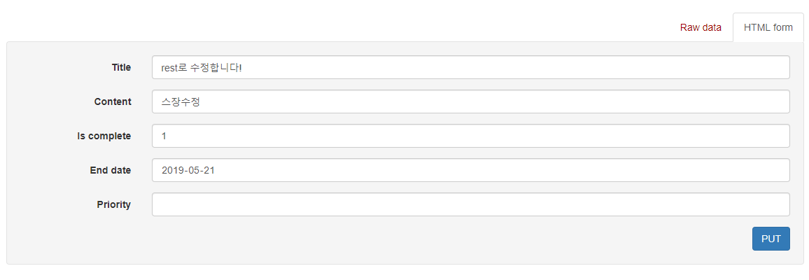 PUT 버튼이 있습니다. 참고로 REST API에서 update는 PUT입니다.