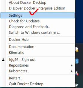 여기 docker settings가 있는데 저길 들어가서
