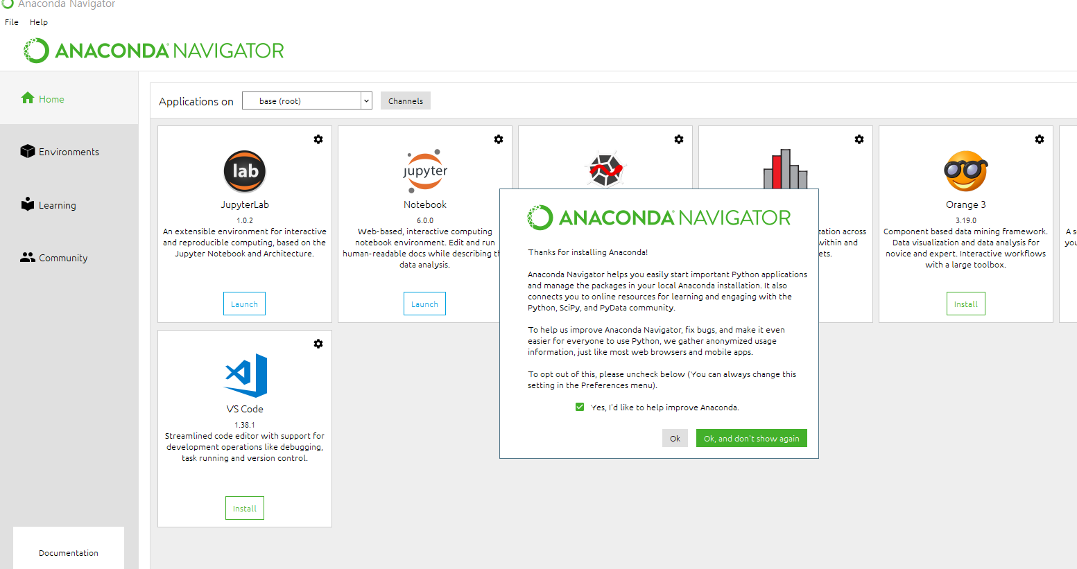 그게 불편하시거나 아니면 GUI 환경으로 보고 싶으시면 anaconda navigator를 보시면 됩니다.