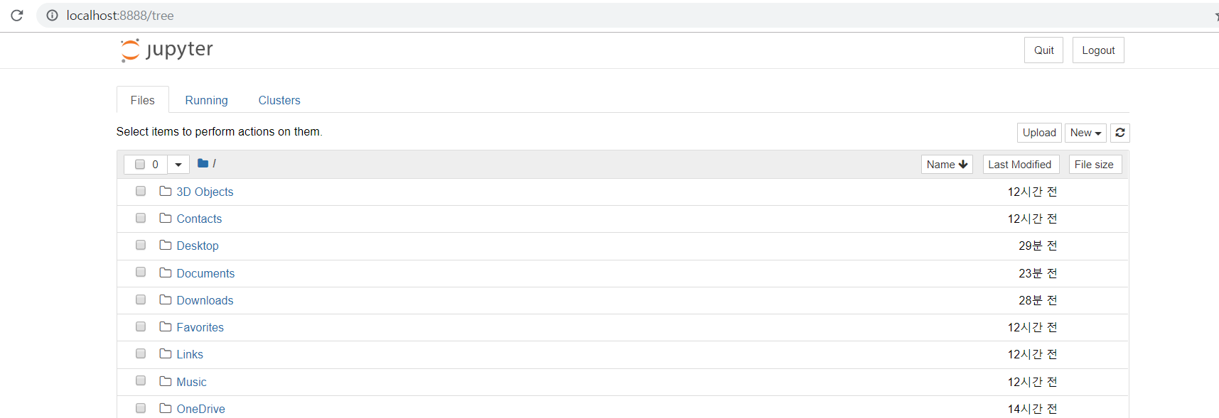 근데 저 화면에 나오는 것은 jupyter-notebook을 입력했을 때 터미널의 위치에 따라 나옵니다.