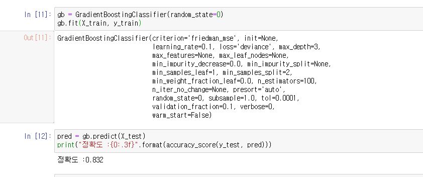 이 GradientBoostingClassifier 객체를 생성한 후에