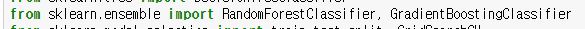 from sklearn.ensemble에서 GradientBoostingClassifier를 불러올 수 있습니다.