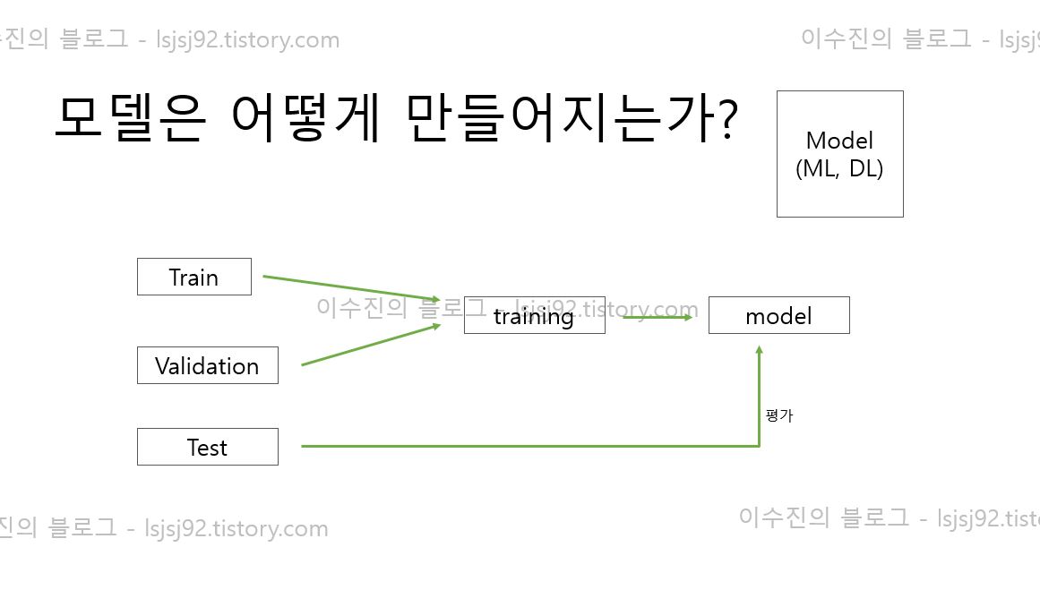 보통, 머신러닝 딥러닝에서 데이터는 train, validation, test 이렇게 3가지로 데이터를 나눕니다.