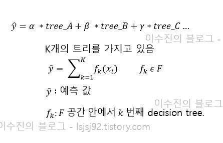 - 즉, 앙상블 부스팅(ensemble boosting)의 특징인 가중치 부여를 경사하강법(gradient descent)으로 한다.