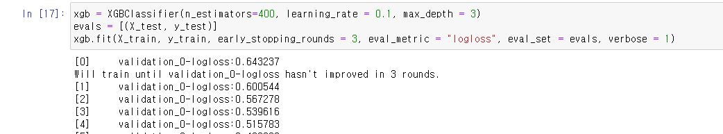 위를 보면 early_stopping_rounds를 3으로 했습니다.