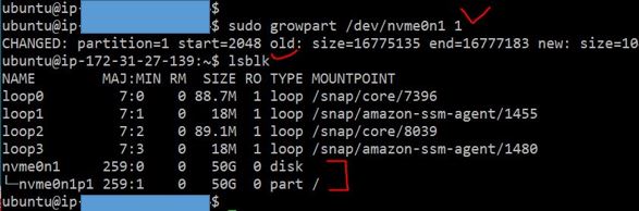 그 명령어로 sudo growpart /dev/nvme0n1 1 과 같이 명령어를 쳐줍니다.