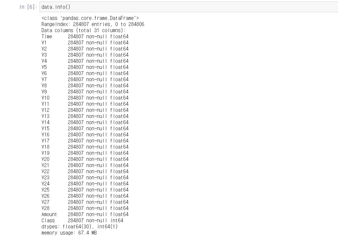 해당 포스팅의 데이터는 kaggle에서 제공해준 kaggle credit card fraud를 사용했습니다.