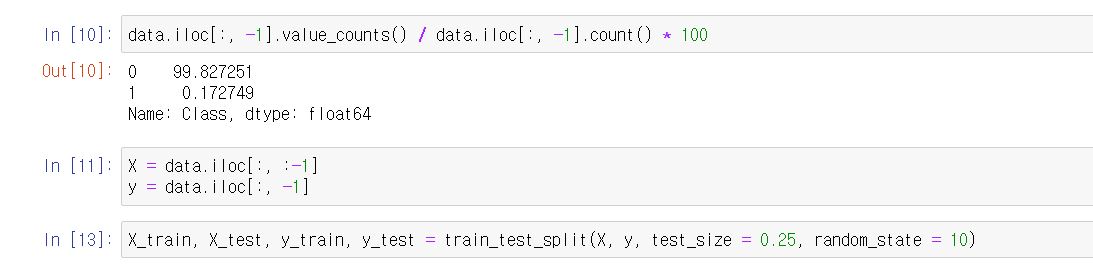 신용카드 사기인 건수와 아닌 건수의 비율이 99.8% vs 0.02입니다. 엄청나게 unbalance하죠.