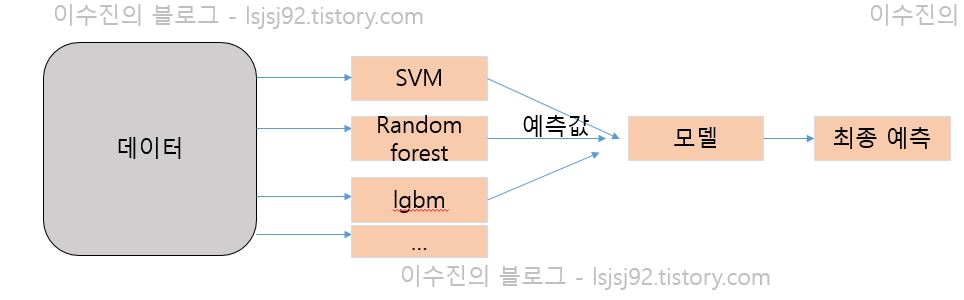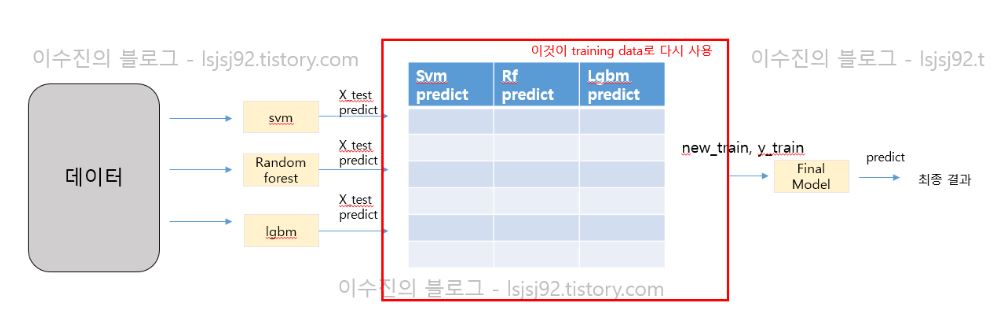 스태킹 앙상블의 기본 구조를 활용하면 아래 그림처럼 됩니다.