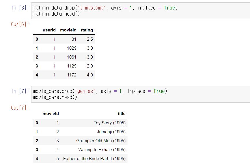 timestamp와 genres는 잠재 잠재요인 기반 협업 필터링 추천 시스템에서 필요없습니다.