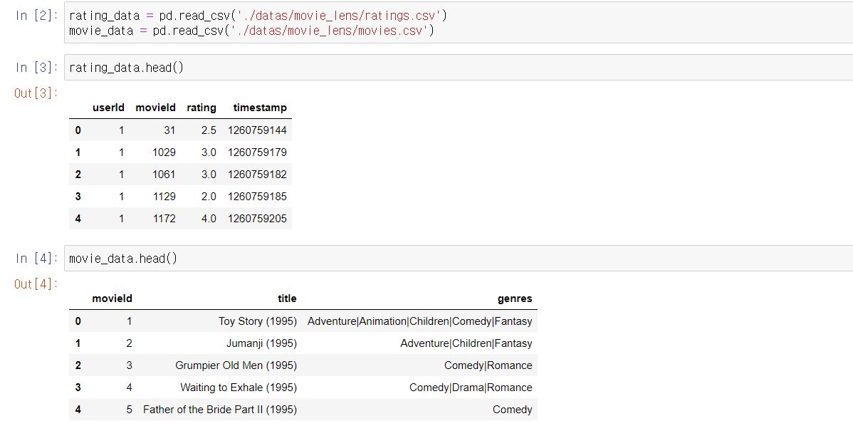 이 movielens 데이터는 2개로 나뉘어져 있는데요.