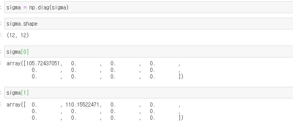 위 사진과 같이 진행을 하면 현재 Sigma 행렬은 0이 아닌 값만 1차원 행렬로 표현된 상태입니다.