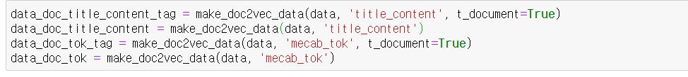 - make_doc2vec_data - doc2vec에서 사용할 수 있는 데이터 생성