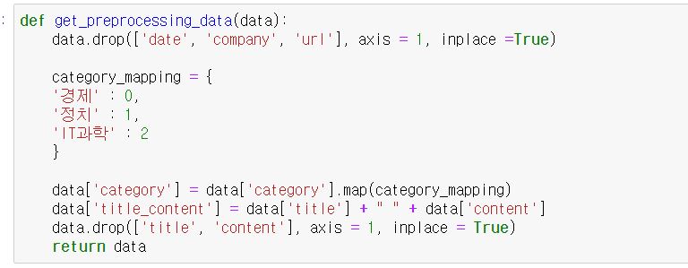 그 category 값을 mapping 해주며, 제목과 본문을 합쳐서 하나의 feature로 사용합니다.