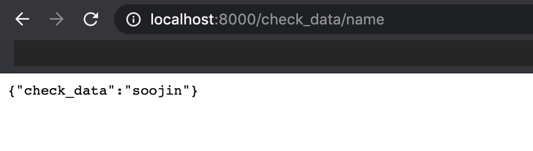 따라서, 웹 브라우저에서 localhost:8000/check_data/name 을 하게 되면 이 name이 datas 딕셔너리에 들어가 그 값이 나오게 됩니다!