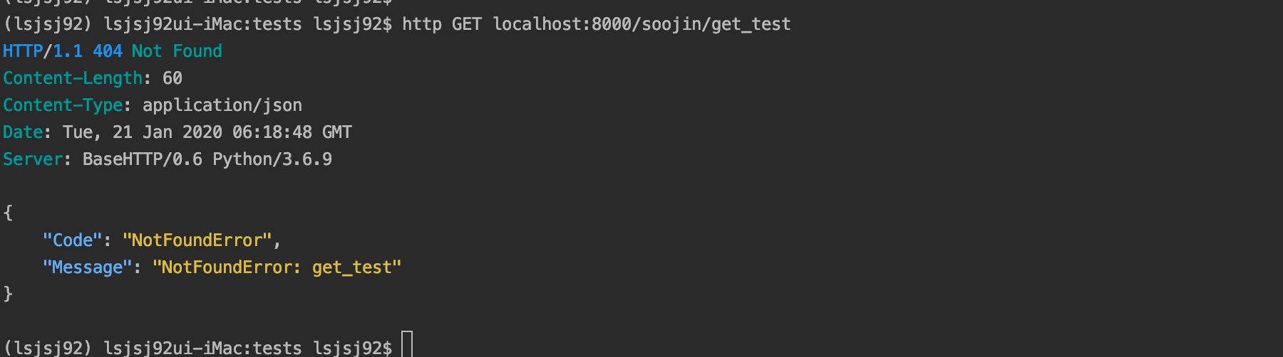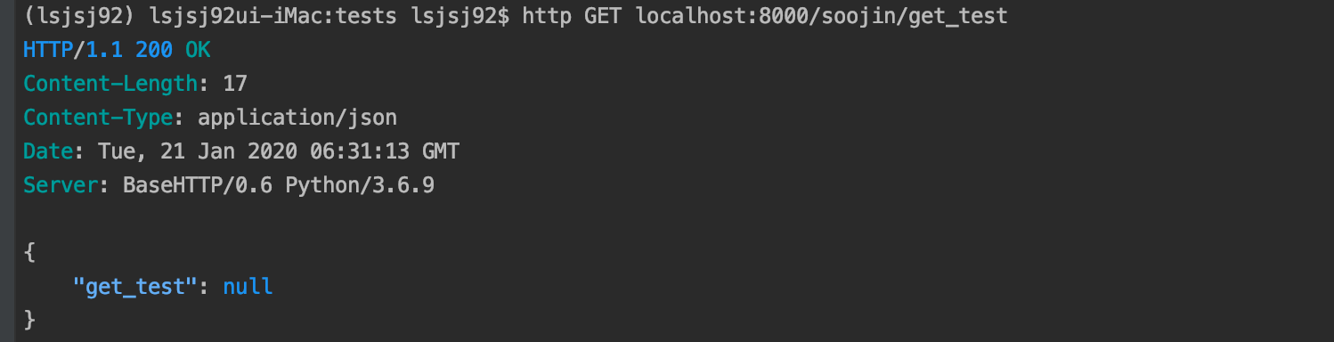 http GET localhost:8000/soojin/get_test를 해봅니다.