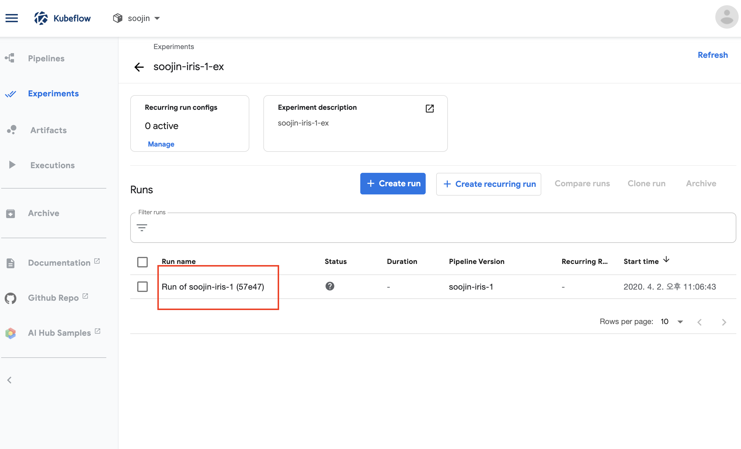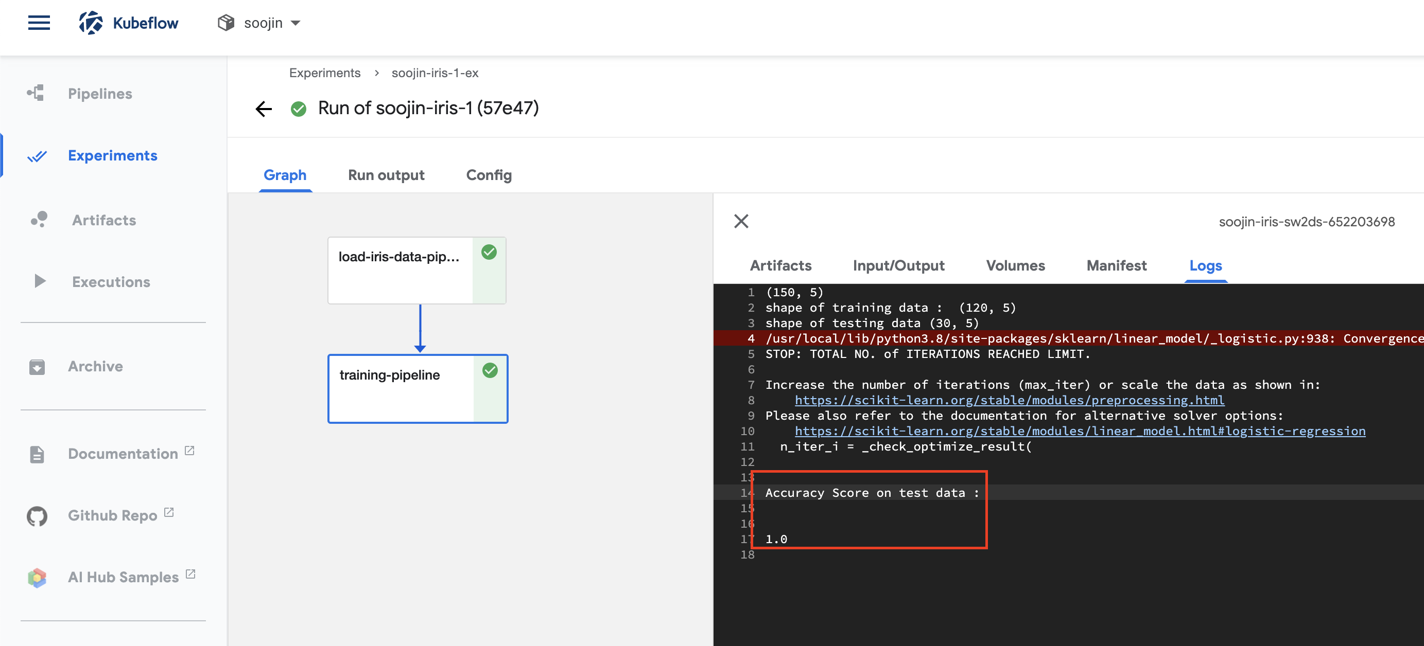 자! 이제 드디어 kubeflow 예제를 돌리기 위해서 iris kubeflow example 환경이 전부 갖추어졌습니다.