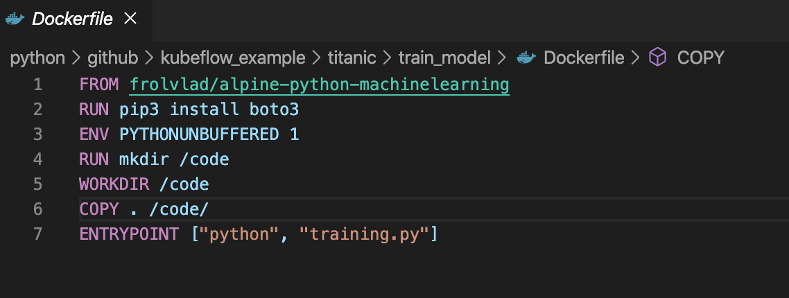 이제 해당 파일을 kubeflow에서 사용할 수 있도록 Dockerfile을 만들어주면 됩니다. Dockerfile 내용은 아래와 같습니다.