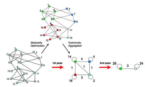 등 이렇게 다양한 community detection이 있는데요. 저는 그 중에서 louvain 알고리즘에 대해 간략하게 정리해보려고 합니다.