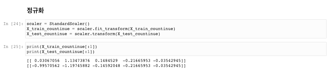 그리고 continuous 데이터는 StandardScaler로 정규화해줍니다.