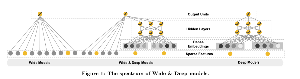 Wide & Deep Models는 결국 저 Wide 한 부분과 Deep한 부분을 합쳐놓은 모델입니다. 그러면 여기서 말하는 Wide한 영역과 Deep한 영역은 무엇일까요?