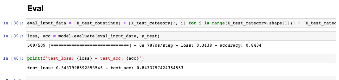 그리고 모델을 훈련하고 평가를 합니다.