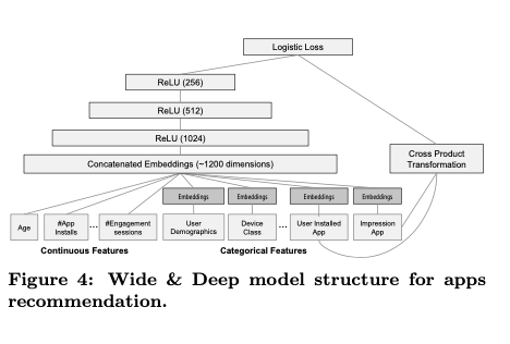 - Sparse 변수에 대해 cross-product feature를 사용해서 A를 설치했고 B에 impression이 있다면 1의 값을 주는 것 등의 변환