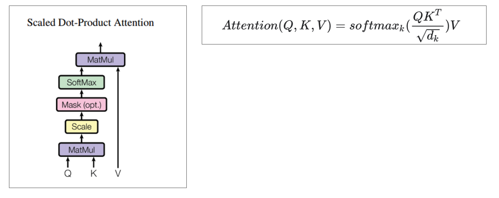 여기서 scaled dot product attention 부분이 있는데요. 여기 input으로 Query, Key, Value가 들어오게 됩니다. 이때, Q, K, V가 같은 value로 들어오면 이것을 self attention이라고 부릅니다.