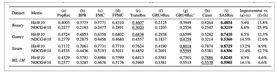 - Self Attention based Sequential Recommendation model이라고 해서 SASRec라고 부른다