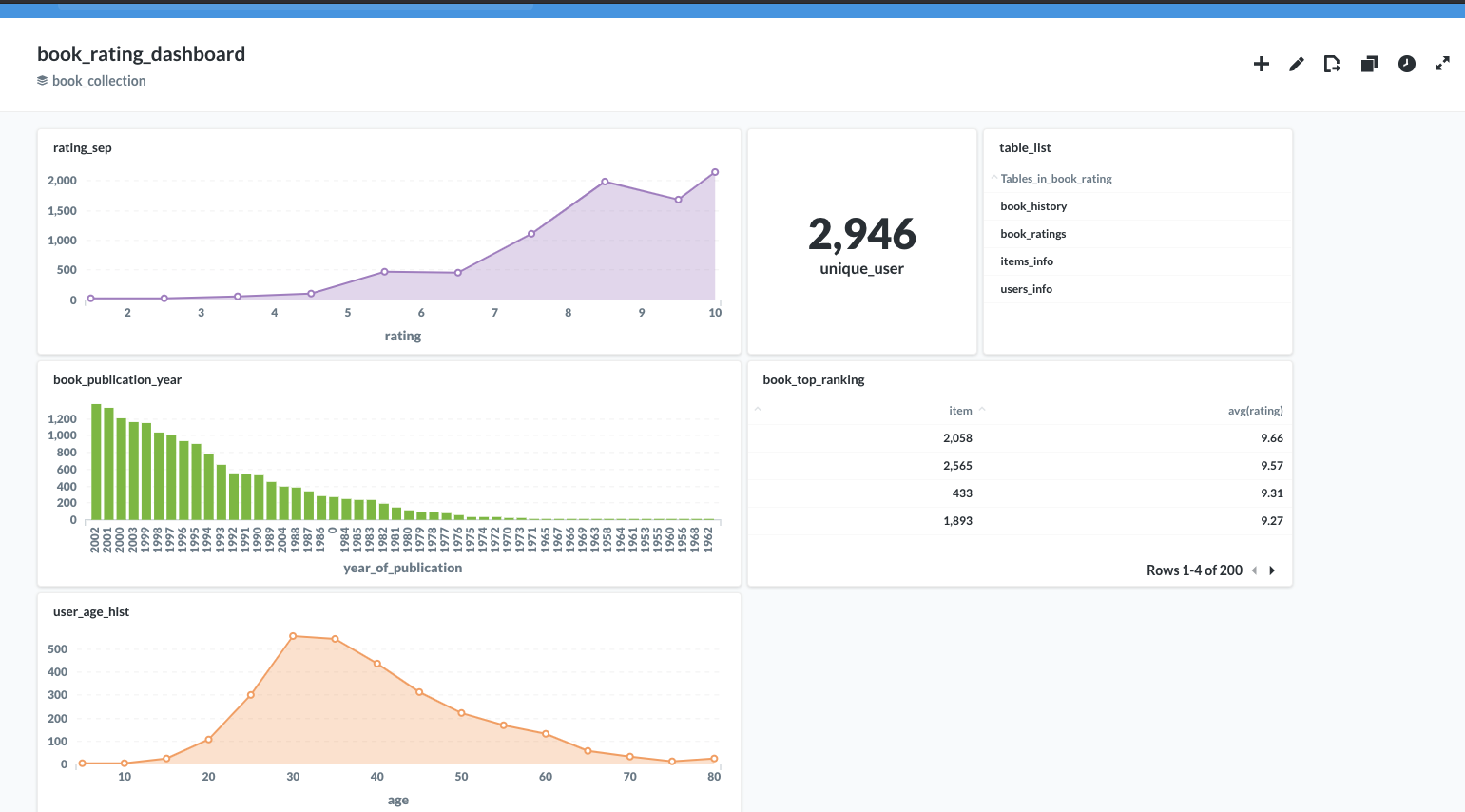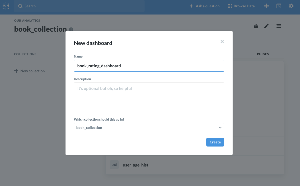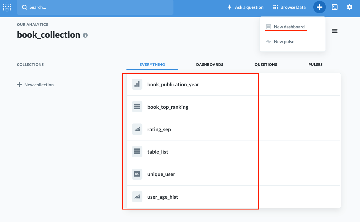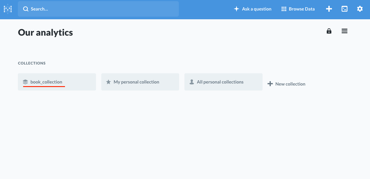 생성하게 되면 메타데이터 our analytics상에서 book_collection을 볼 수 있습니다.