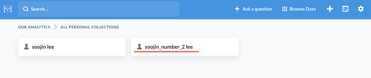 즉, 본인이 남들에게 보이기 싫은 대시보드나 sql 쿼리 등을 본인 collection에 모아 놓을 수 있다는 겁니다.